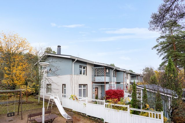 Tämä viehättävä rivitalokoti Espoon Soukassa tarjoaa rauhallista asumista kauniissa ympäristössä. Asunto sijaitsee omalla tontilla ja sen kahdessa kerroksessa on tilaa niin perheelle kuin pariskunnallekin. Alakerrassa on avara olohuone, jossa on tunnelmallinen takka, ja keittiö, ruokailutila. Yläkerrassa on kaksi makuuhuonetta, ja mahdollisuus lisähuoneeseen tuo joustavuutta tilaratkaisuihin.