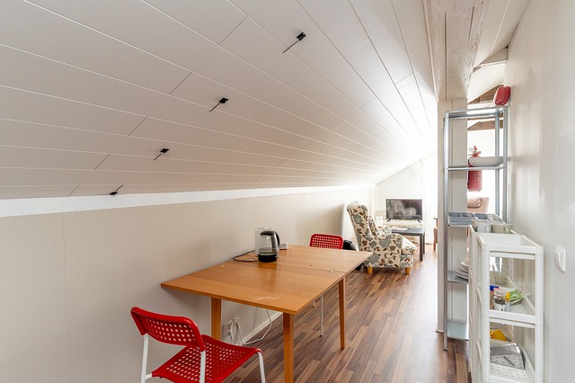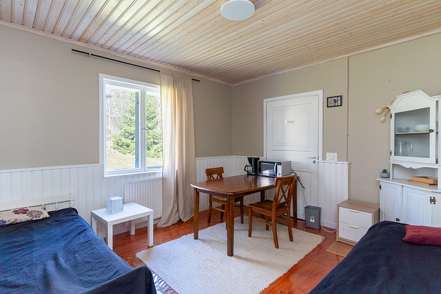 - Alakerran huoneissa lautalattiat , seinät ja katot maalatut
