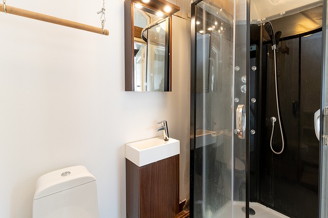 - Kylpyhuoneissa lattiat laattaa ja seinät laattaa ja paneelia. Suihkukaapit, pk-liitännät. Lattialämmitykset toimii. Peilikaappi ja peili.