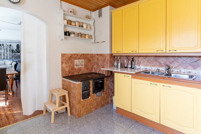 - Keittiössä keltainen kaapisto, jk-pak. -15, apk -17, liesituuletin, keraaminen taso, erill.uuni, puuhella. Lattialämmitys ei toimi.