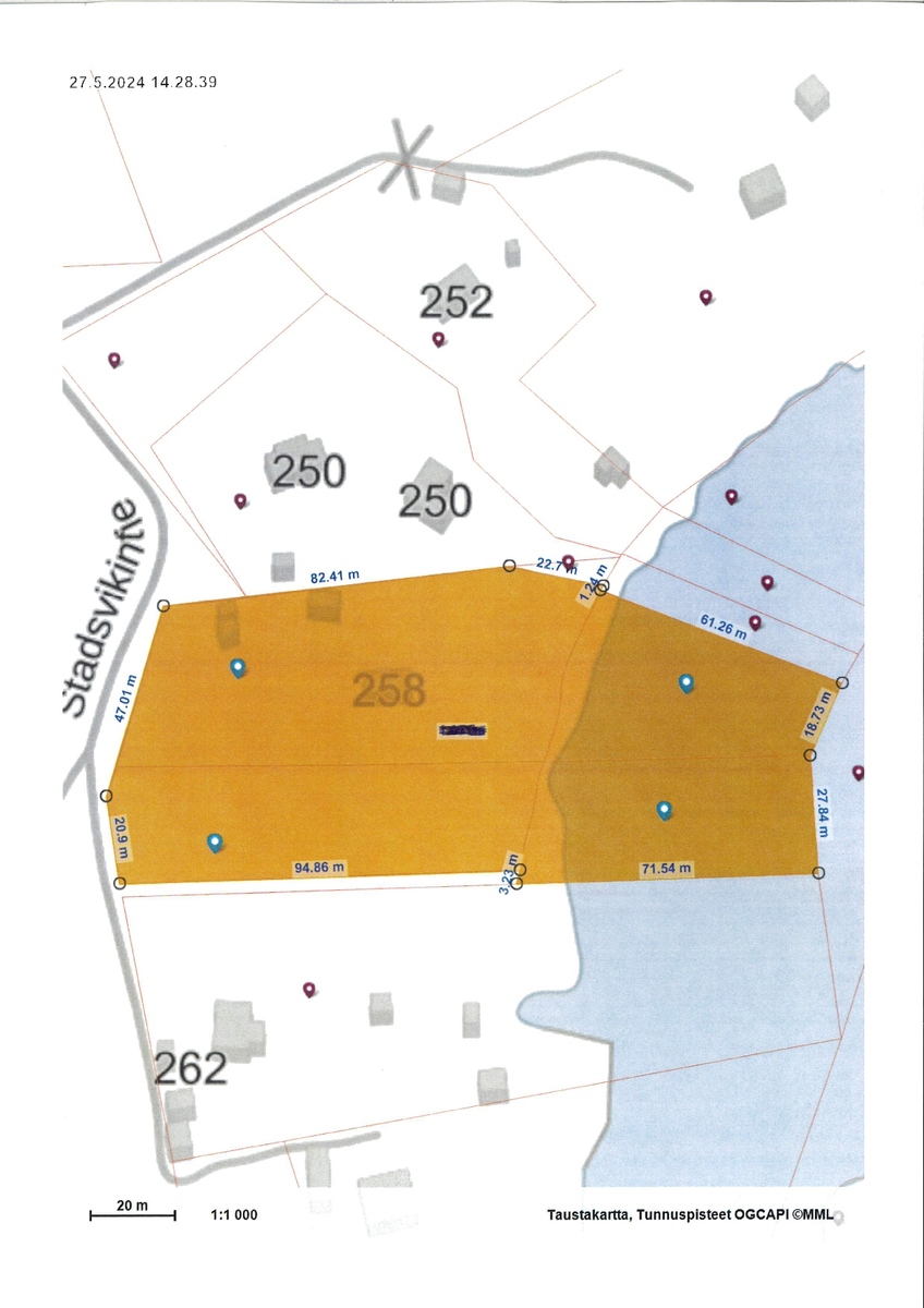 - Maapinta-ala noin 7000 m2 ja vesipinta-ala noin 3140 m2. Maa-alan eteen on muodostunut vesijättöä joka kuuluu omaan vesialueeseen. Kohde myydään uuden omakotitalon rakennuspaikkana jolla sijaitsee purettaviksi tarkoitetut rakennukset, tämä on huomioitu hinnassa ja täten myyjät ovat vapautettuja maakaaren mukaisista vastuuvelvoitteista rakennusten kunnosta. Kauppaan sisältyy sähköliittymä sekä osuuskunnan vesi- ja viemäriliittymien ns. passiiviliittymät.