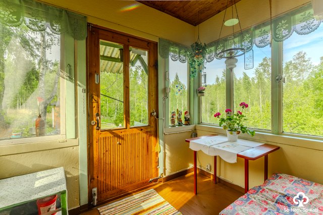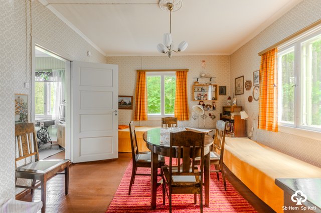 På mycket naturskönt ställe på landet finns detta år 1947-1948 byggda lilla egnahemshus. Huset har de senaste åren använts som sommarbostad.