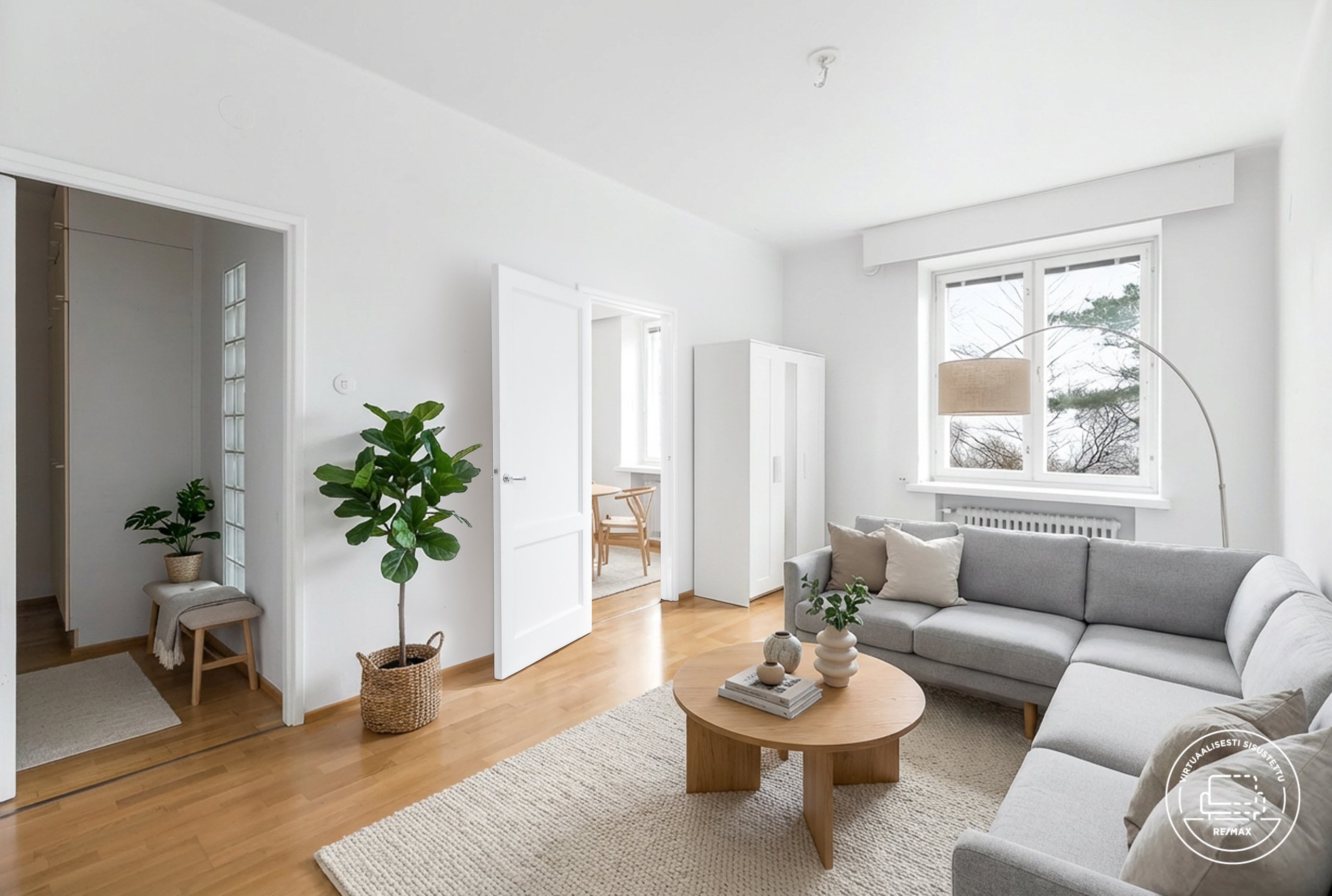 Taka-Töölössä loistopaikalla toisen kerroksen valoisa kaksio.