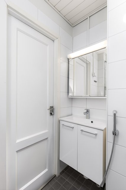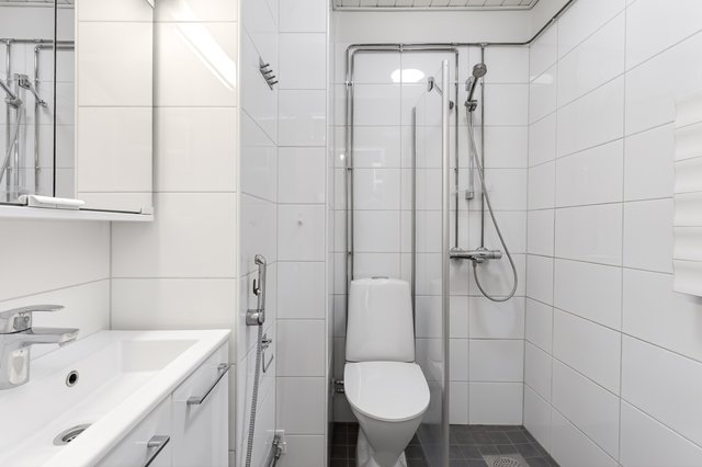 - Peilikaappi, allaskaappi, suihkuseinä, rättipatteri, bidee-suihku, ja pesukoneliitäntä