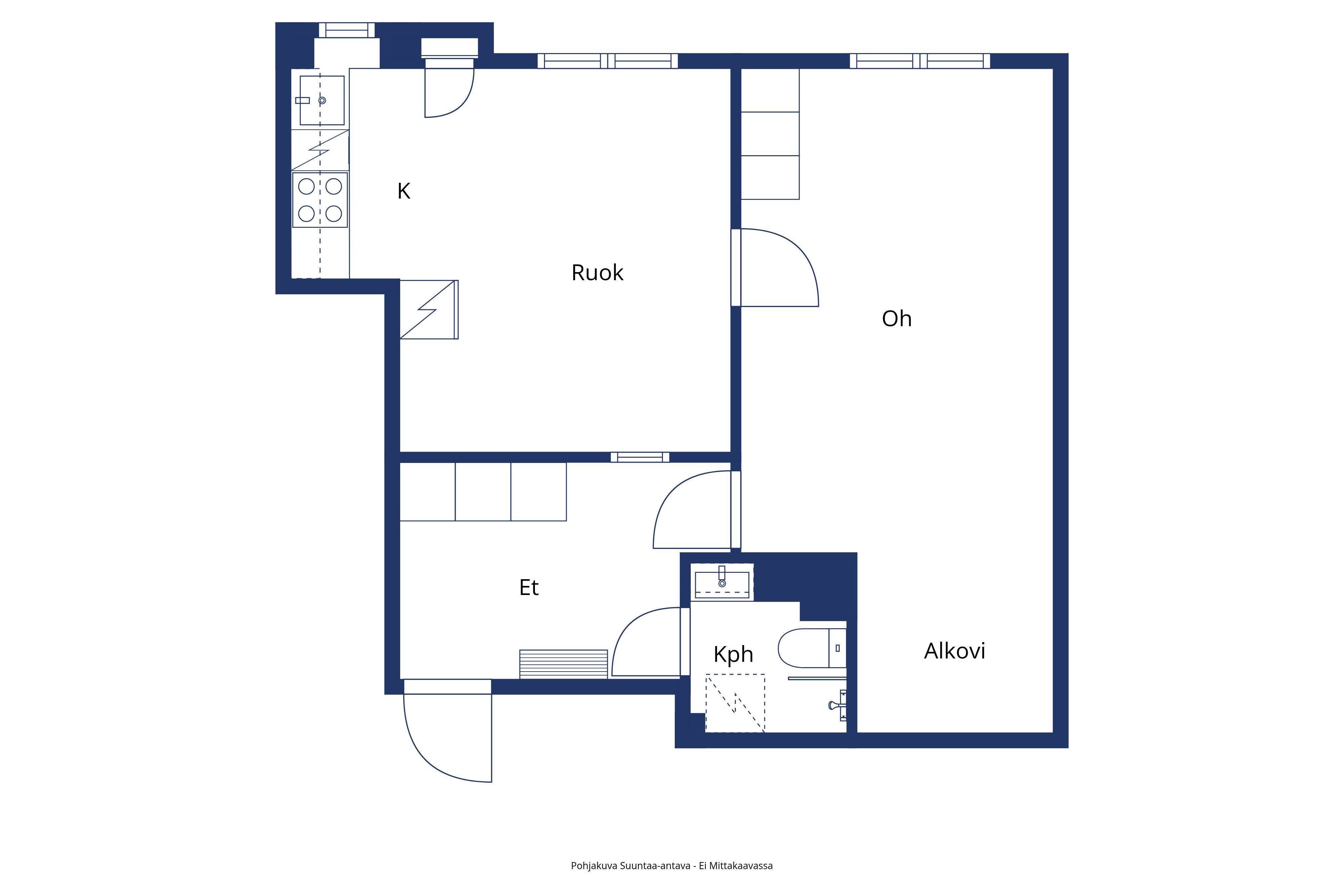- Isännöitsijäntodistuksen mukainen, (Pinta-ala ei ole tarkistusmitattu ja todellinen pinta-ala voi olla suurempi tai pienempi, kuin ilmoitettu)