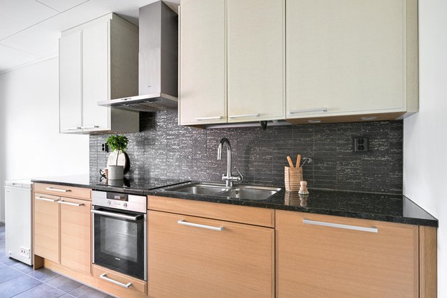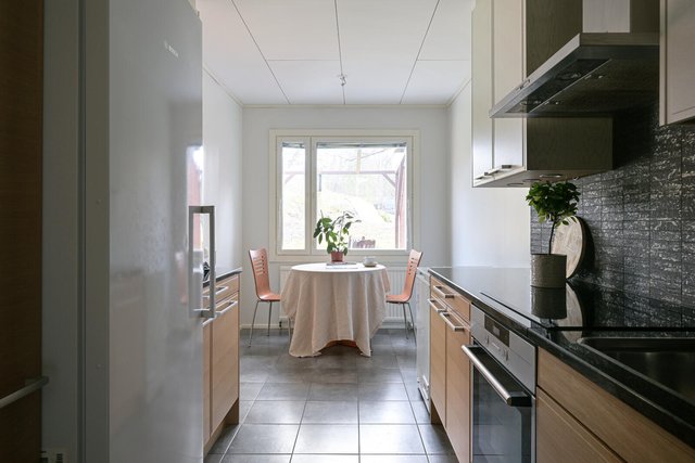 - Puustellin keittiö kivitasolla, välitila- sekä lattialaattoineen. Asennusvuosi 2011, kodinkoneita uusittu tarvittaessa.