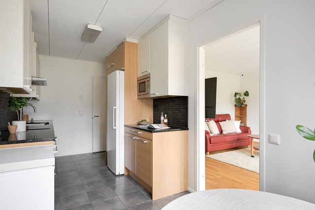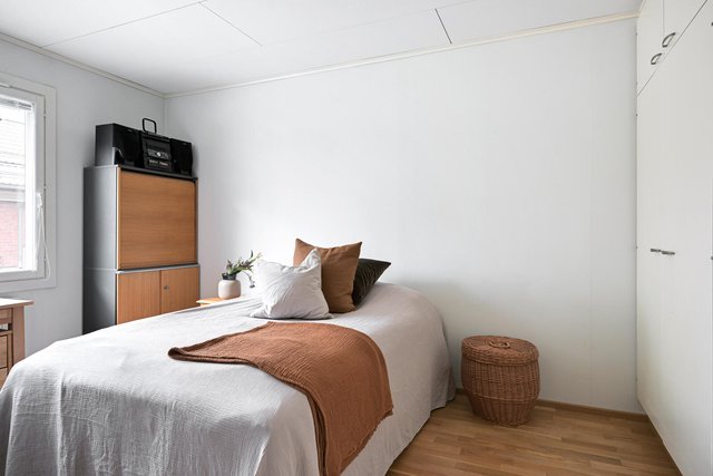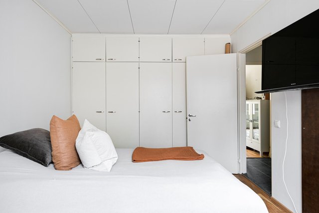 Säilytystilaa kodista löytyy mukavasti; makuuhuoneessa ja eteisessä on hyvin kaappitilaa, ja yhtiön tiloissa erillinen varasto. Taloyhtiössä on lisäksi kätevät pyykinpesu ja -kuivaustilat.