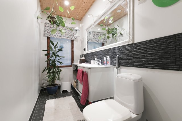 - Suihku, pesukoneliitäntä, lattialämmitys, ja suihkuseinä