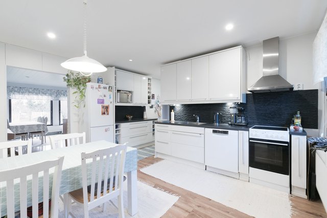 - Jääkaappipakastin, liesi, ja astianpesukone