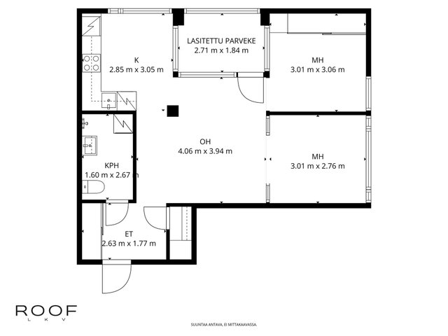 - Yhtiöjärjestyksen mukainen, Isännöitsijäntodistuksen mukainen, (Pinta-ala ei ole tarkistusmitattu ja todellinen pinta-ala voi olla suurempi tai pienempi, kuin ilmoitettu)