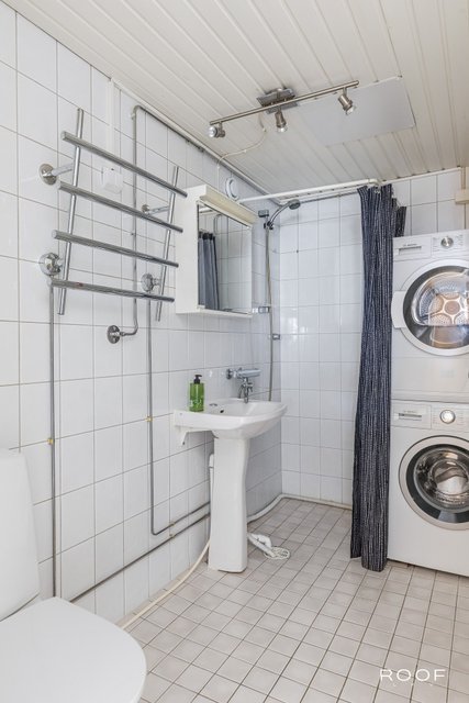 - Suihku, wc-istuin, pesukoneliitäntä, peilikaappi, ja pesuallas