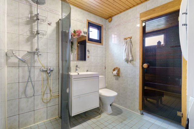 Oma sauna, parveke ja tilava piha tekevät arjesta sujuvaa ja viikonlopuista rentouttavia.