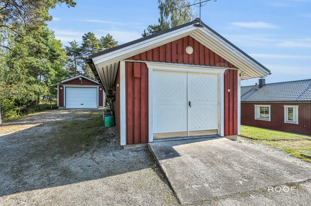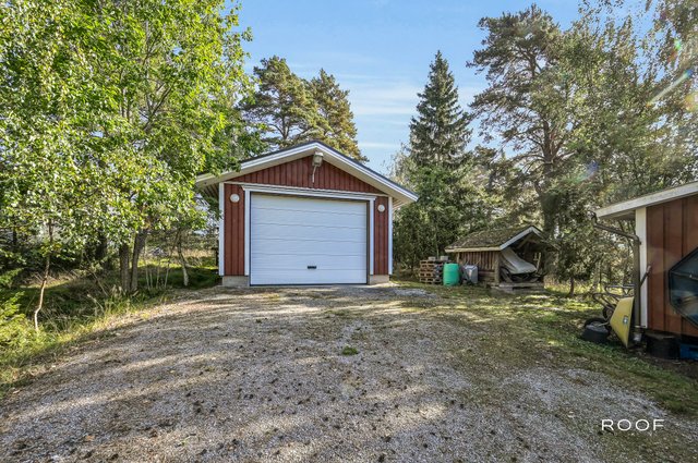 På den egna ca 2900m2 stora tomten finns även ett 2002 byggt varmt garage på ca 38m2 samt ytterligare en kall ekonomibyggnad, byggd 2006 med en yta på ca 47m2, båda byggnaderna är separata. Vilket gör detta till ett ypperligt hem för hobbyn och/eller verksamhet.