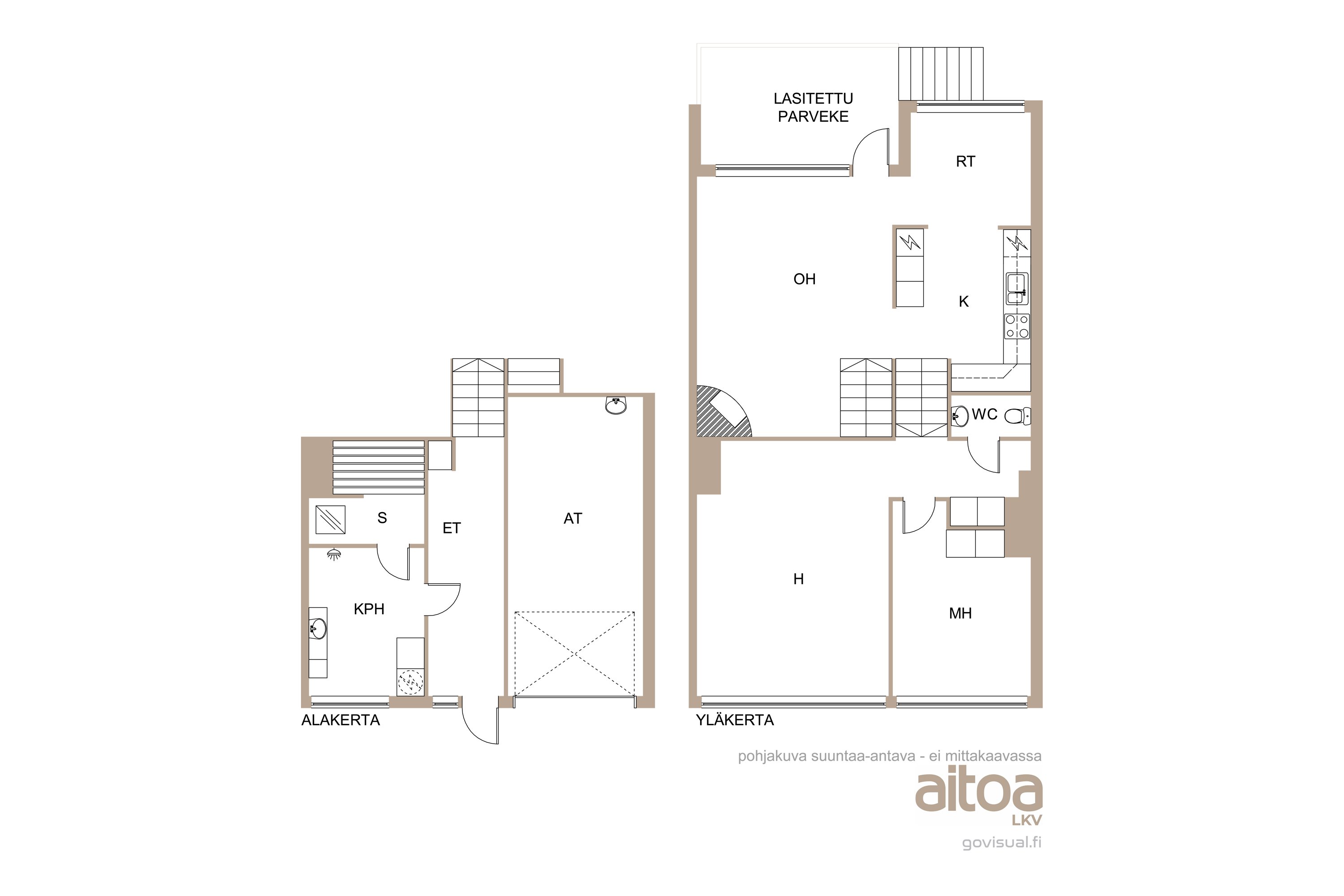 - Asuinhuoneisto 76 m², alakerta 20 m², autotalli 15 m². Ei tarkistusmitattu. Pinta-alat saattavat tämän ikäisissä kohteissa (yhtiö rekisteröity ennen 01.01.1992) poiketa olennaisestikin asuinrakennusten nykyisten mittaustapojen ja standardien (SFS 5139) mukaan laskettavasta asuintilojen pinta-alasta. Pinta-ala voi siis olla edellä mainittua pienempi tai suurempi.
