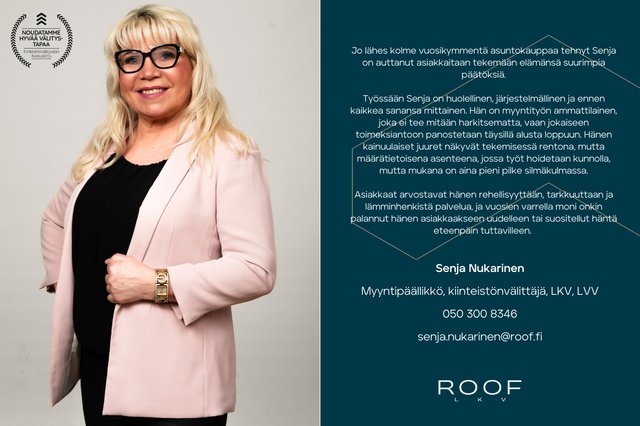Tätä asuntoa myy Senja Nukarinen, Myyntipäällikkö, kiinteistönvälittäjä, LKV, LVV
