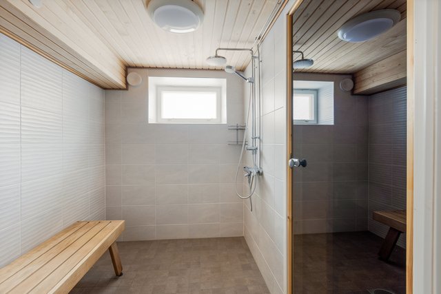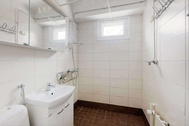 - WC-istuin, suihku, pesukoneliitäntä, peilikaappi, pesuallas, bidee-suihku, ja lattialämmitys