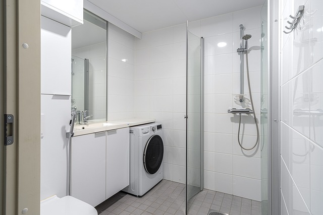 - Peili, suihku, wc-istuin, pesukoneliitäntä, allaskaappi, pesukone, suihkuseinä, lattialämmitys, ja kiinteät valaisimet