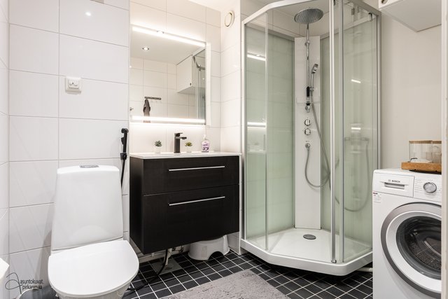 Ensimmäisessä kerroksessa sijaitsevassa asunnossa on tilava ja lasitettu parveke, joka tarjoaa mukavan lisätilan ympäri vuoden. Kylpyhuoneessa on suihkukaappi, mikä tekee siitä helppohoitoisen.