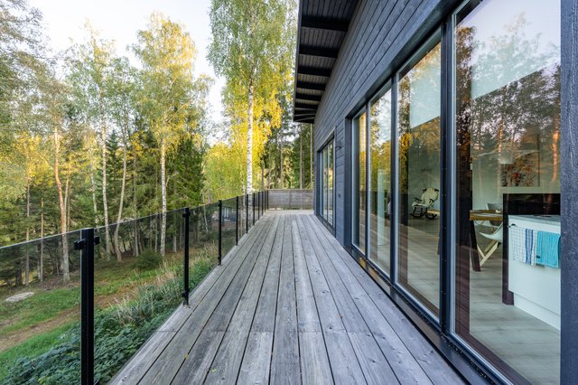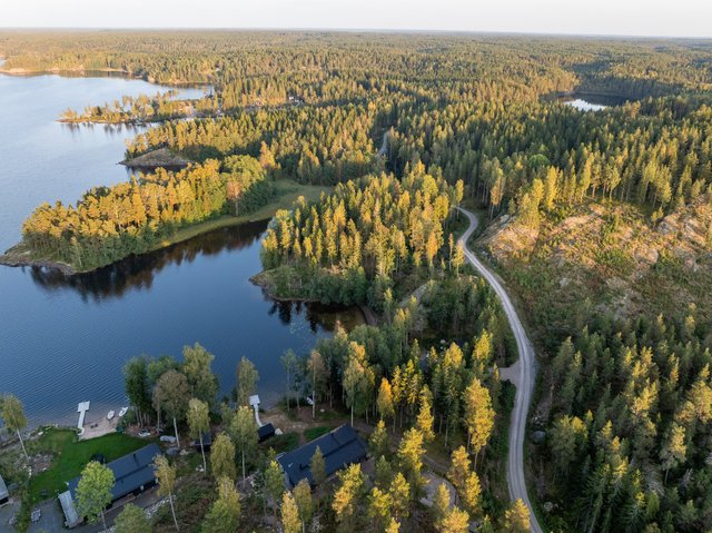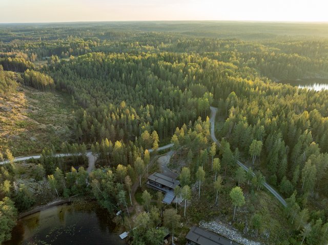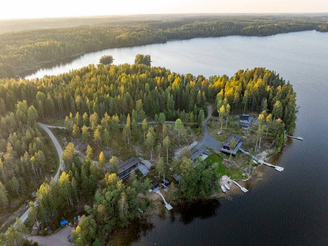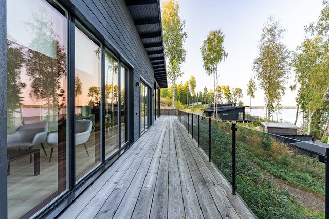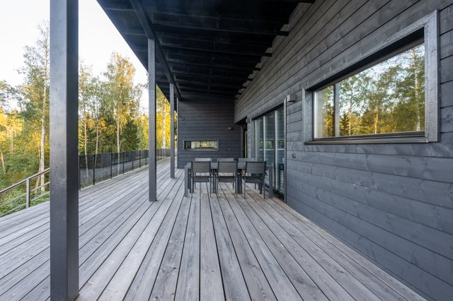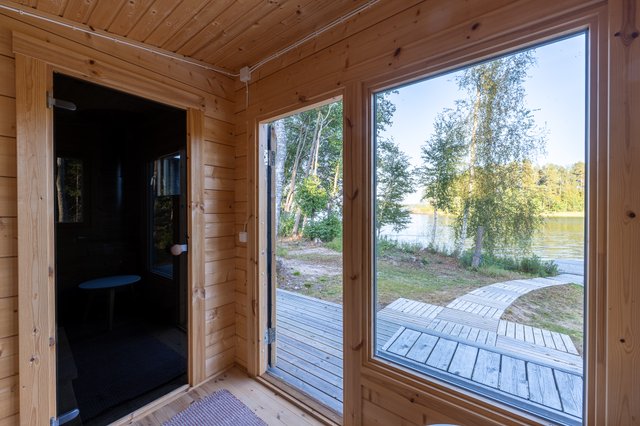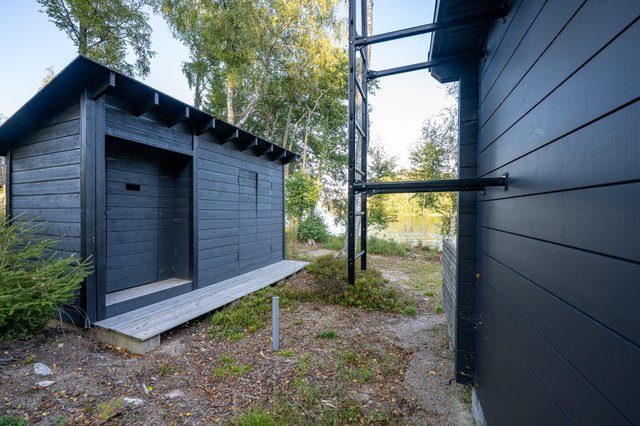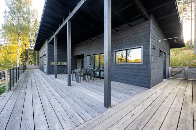 Ulkoilmaelämää varten villalla on oma hiekkaranta, joka sijaitsee luonnonkauniin järven rannalla. Rantaan on ajettu hiekkaa, ja järvessä on luonnon hiekkapohja – täydellinen paikka uimiseen ja vesileikkeihin. Lisäksi suurelta terassilta voit ihailla järven rauhoittavia maisemia ja nauttia kesäilloista.