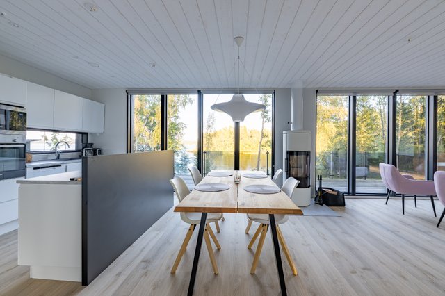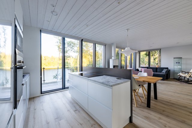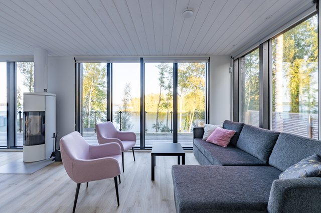 avokeittiö/oh + 2mh + tkh + 2kph + s + et + erillinen rantasauna
