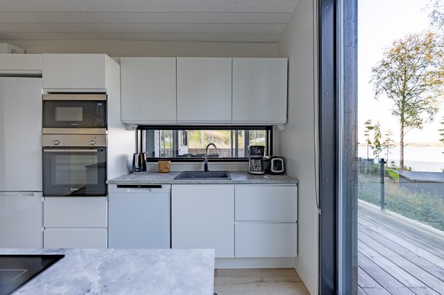 - Jääkaappipakastin, erillisuuni, liesitaso, liesi, liesituuletin (aktiivihiili), mikroaaltouuni, ja astianpesukone