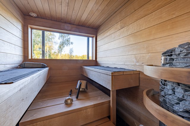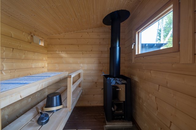 - Sähkökiuas ja rantasaunassa puulämmitteinen kiuas