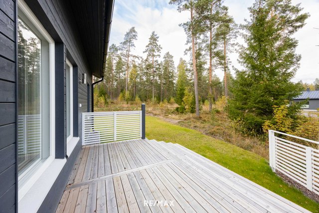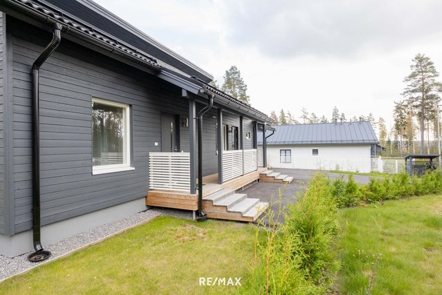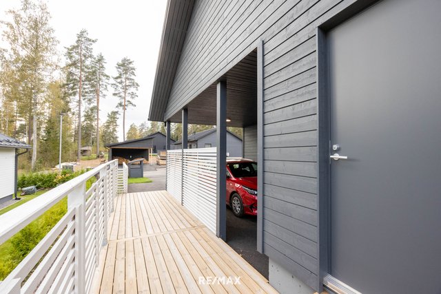 Talon yhteydessä on autokatos sekä lämmin varasto. Tasainen nurmipiha tarjoaa monia mahdollisuuksia ja asfaltoitu etupiha tarjoaa mahdollisuuden esimerkiksi pihapeleihin.