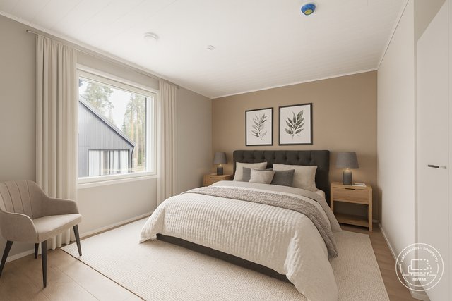 - Kahdessa makuuhuoneessa kiinteät kaapit, yhdessä vaatehuone