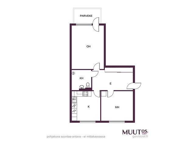 - Edellä mainittu pinta-ala saattaa tämän ikäisessä kohteessa poiketa olennaisestikin huoneiston nykyisen ja rakentamisaikaisen mittaustapojen ja standardien mukaan laskettavasta pinta-alasta. Huoneiston todellinen pinta-ala voi olla yhtiöjärjestyksessä, isännöitsijäntodistuksessa ja esitteessä mainittua pienempi tai suurempi. Hinta ei ole pinta-alaperusteinen. Yhtiöjärjestyksen mukainen huoneistoselitelmä: 2h+k