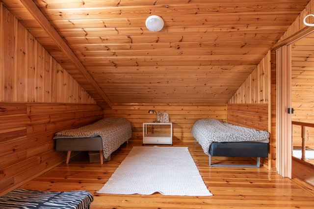 - Kaksi virallista makuuhuonetta, lisäksi paljon makuutilaa parvella.