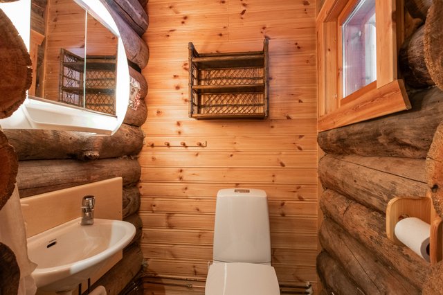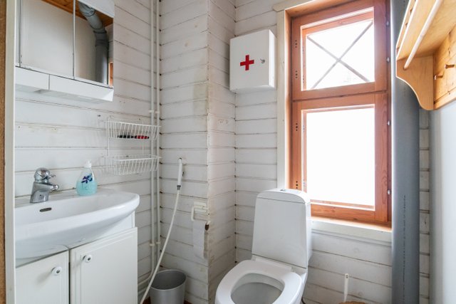 - Eteisessä oleva wc: puulattia, hirsi+paneeliseinät, peilikaappi, wc, pesuallas Kodinhoitohuoneessa oleva wc: laattalattia, puupaneeli seinät, pesuallas, wc, bidee, peilikaappi Yläkerran makuuhuoneessa oleva wc: puulattia, puuseinät, wc, pesuallas