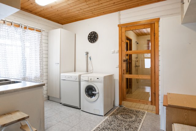 Kodin tilat jakautuvat kahteen kerrokseen: kaksi makuuhuonetta sekä runsaasti lisätilaa parvella, tilava olohuone, keittiö sekä kolme wc:tä, kylpyhuone ja käytännöllinen kodinhoitohuone. Talossa on oma sauna sähkökiukaalla ja lisäksi pihapiirissä tunnelmallinen pihasauna puukiukaalla. Lämmitysmuotoina toimivat sähkö, puu ja ilmalämpöpumppu.