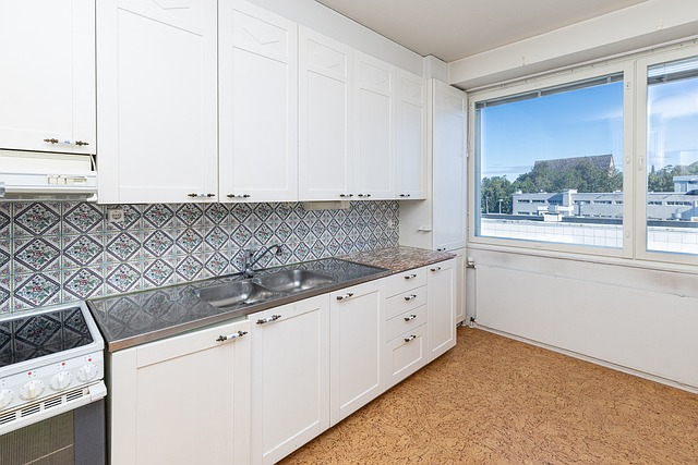 - Keittiössä muovimatto ja seinät maalatut. Valkoinen kaapisto. Keraaminen sähköliesi, jääkaappi-pakastin, liesituuletin.