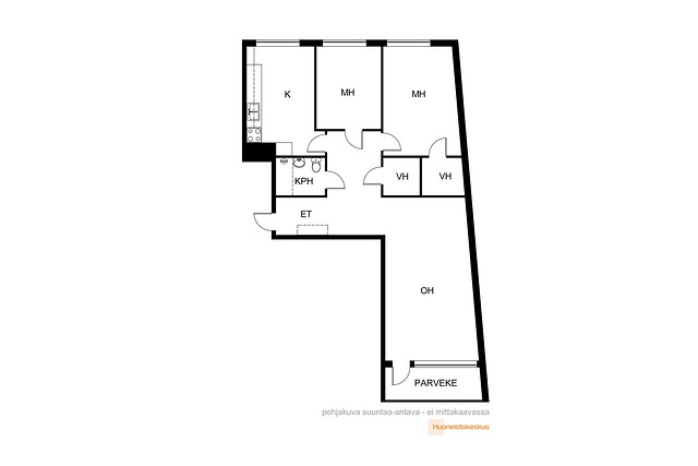 - Pinta-alatieto perustuu Isännöitsijäntodistukseen ja yhtiöjärjestykseen. Pinta-alaa ei ole tarkastusmitattu, joten todellinen nykystandardin mukaan laskettava pinta-ala voi siten poiketa olennaisestikin ilmoitetusta. Todellinen pinta-ala voi siten olla ilmoitettua vähemmän tai enemmän.
