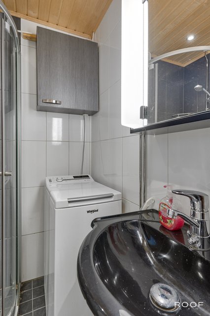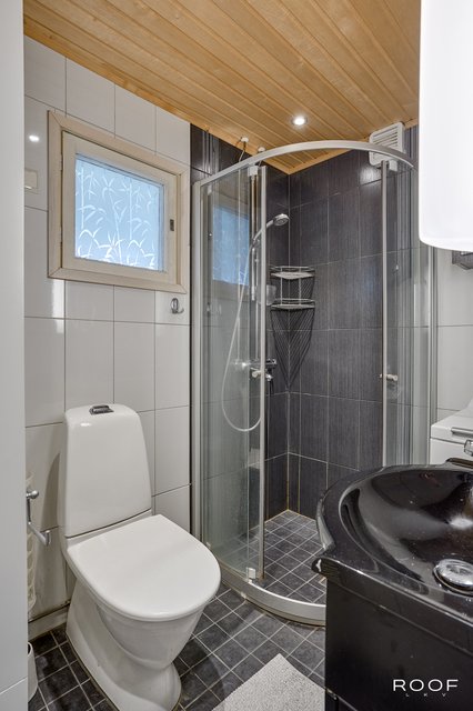 - WC-istuin, suihku, peilikaappi, pesuallas, lattialämmitys, pesukoneliitäntä, ja allaskaappi