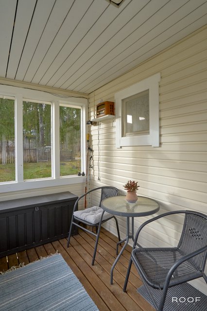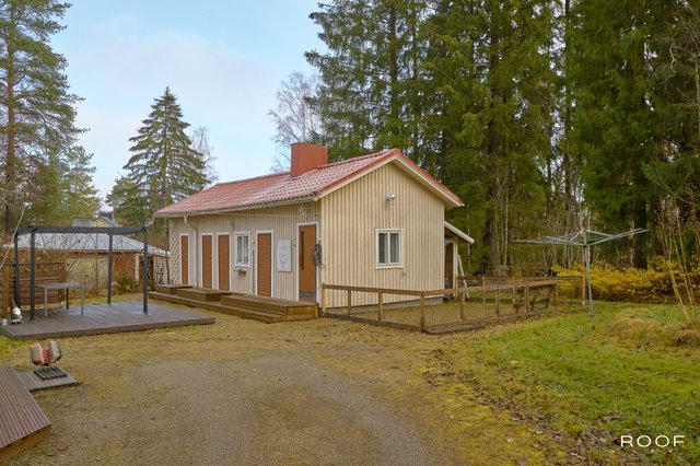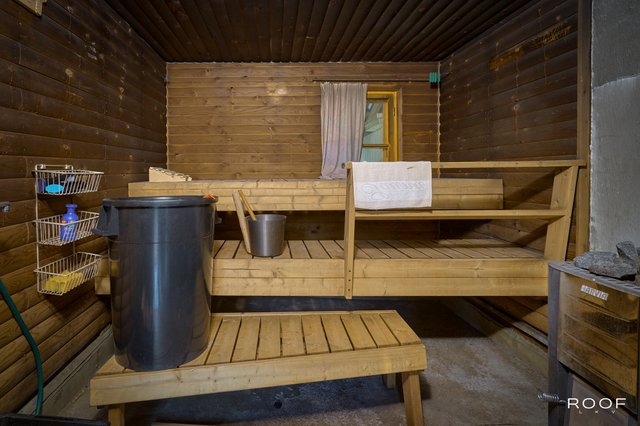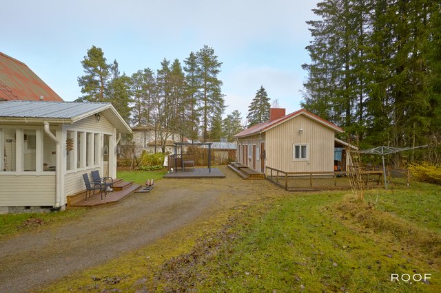 Pihapiiristä löytyy myös erillinen ulkorakennus, jossa on tunnelmallinen ulkosauna, kesähuone, varastotilaa sekä tarvittaessa tilat koiralle. Monipuoliset tilat helposti muunneltavissa eri käyttöön.