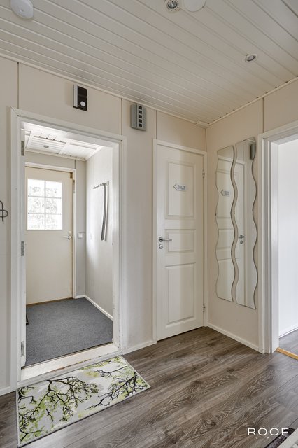 - Rakennusluvan mukainen huoneistoala on 76,1 m2 ja kerrosala on 92,4 m2. Edellä mainitut pinta-alat saattavat tämän ikäisessä kohteessa poiketa olennaisestikin asuinrakennusten nykyisten mittaustapojen ja standardien mukaan laskettavasta asuintilojen pinta-alasta ja eri asiakirjoissa on ilmoitettu eri pinta-aloja. Asuinrakennuksen todellinen asuinpinta-ala voi siis olla esitteessä mainittua pienempi tai suurempi. Ainoa tapa varmistua todellisista pinta-aloista on teettää pinta-alojen tarkistusmittaus. Kohteen hinta ei määräydy pinta-alan perusteella.