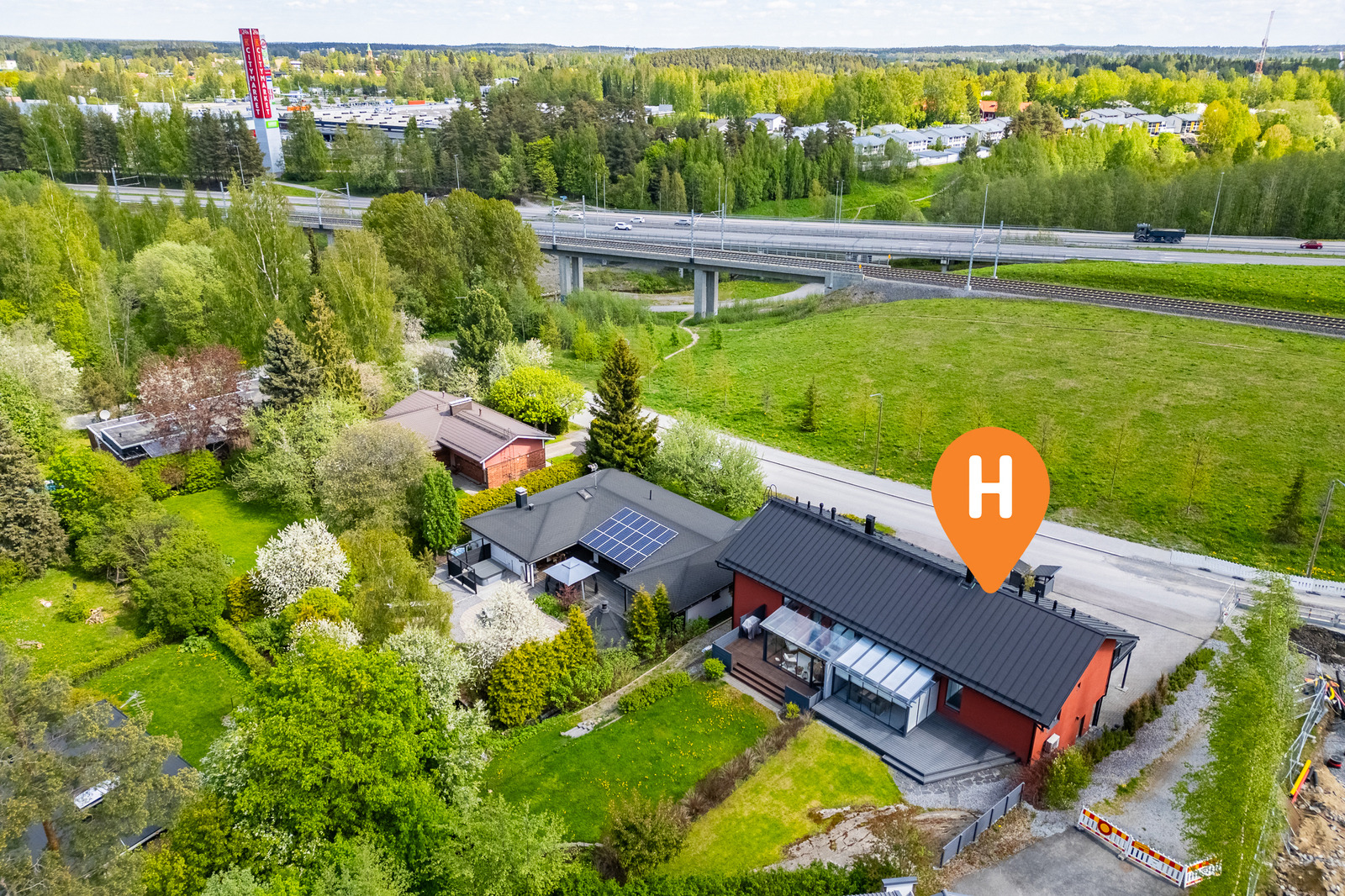 Sijainti on hyvä, sillä muutaman sadan metrin päästä kulkee ratikka, kodista muutoinkin huippu hyvät kulkuyhteydet suuntaan jos toiseenkin samoin miellyttäville ulkoilupoluille.