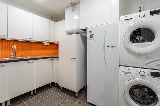 - Pesukoneliitäntä, pesuallas, pyykkikaapit, pöytätaso, lattialämmitys, ja silityspöytä/taso