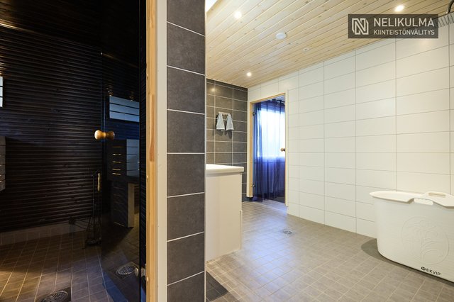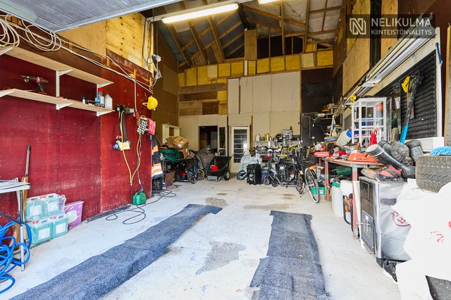- Suuri piharakennus jossa sauna- ja kylpyhuone runsaasti harrastetilaa