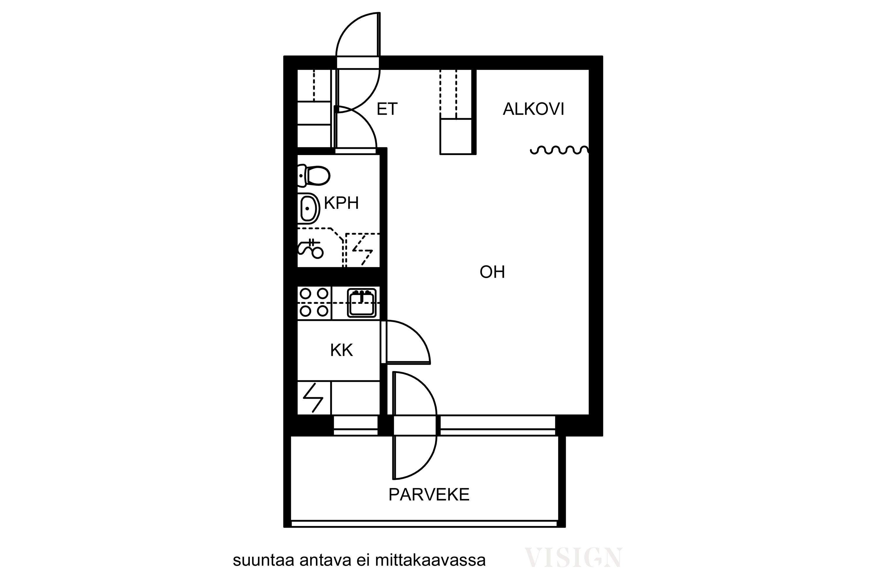 Siistikuntoinen 1.kerroksen (ei maantasa) alkovillinen yksiö. Lasitettu huoneiston levyinen länsiparveke. Heti vapaa.