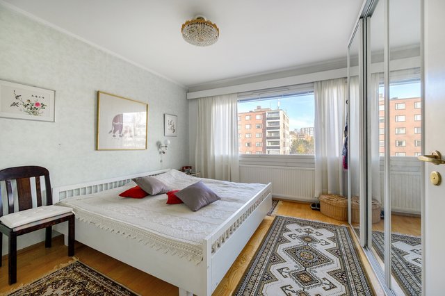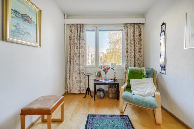 Asunnon parveke on lasitettu ja suuntautuu länteen, mikä tarjoaa mukavat näkymät piha-alueelle. Kolmannessa kerroksessa sijaitseva koti on osa hyvin hoidettua taloyhtiötä, jossa on käytössä muun muassa uima-allas ja lenkkisaunavuorot. Taloyhtiössä on myös kattavat säilytystilat, kuten kylmäkellari ja urheiluvälinevarasto.