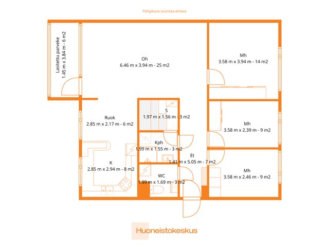 - Yhtiöjärjestyksen mukainen, Isännöitsijäntodistuksen mukainen, (Pinta-ala ei ole tarkistusmitattu ja todellinen pinta-ala voi olla suurempi tai pienempi, kuin ilmoitettu)