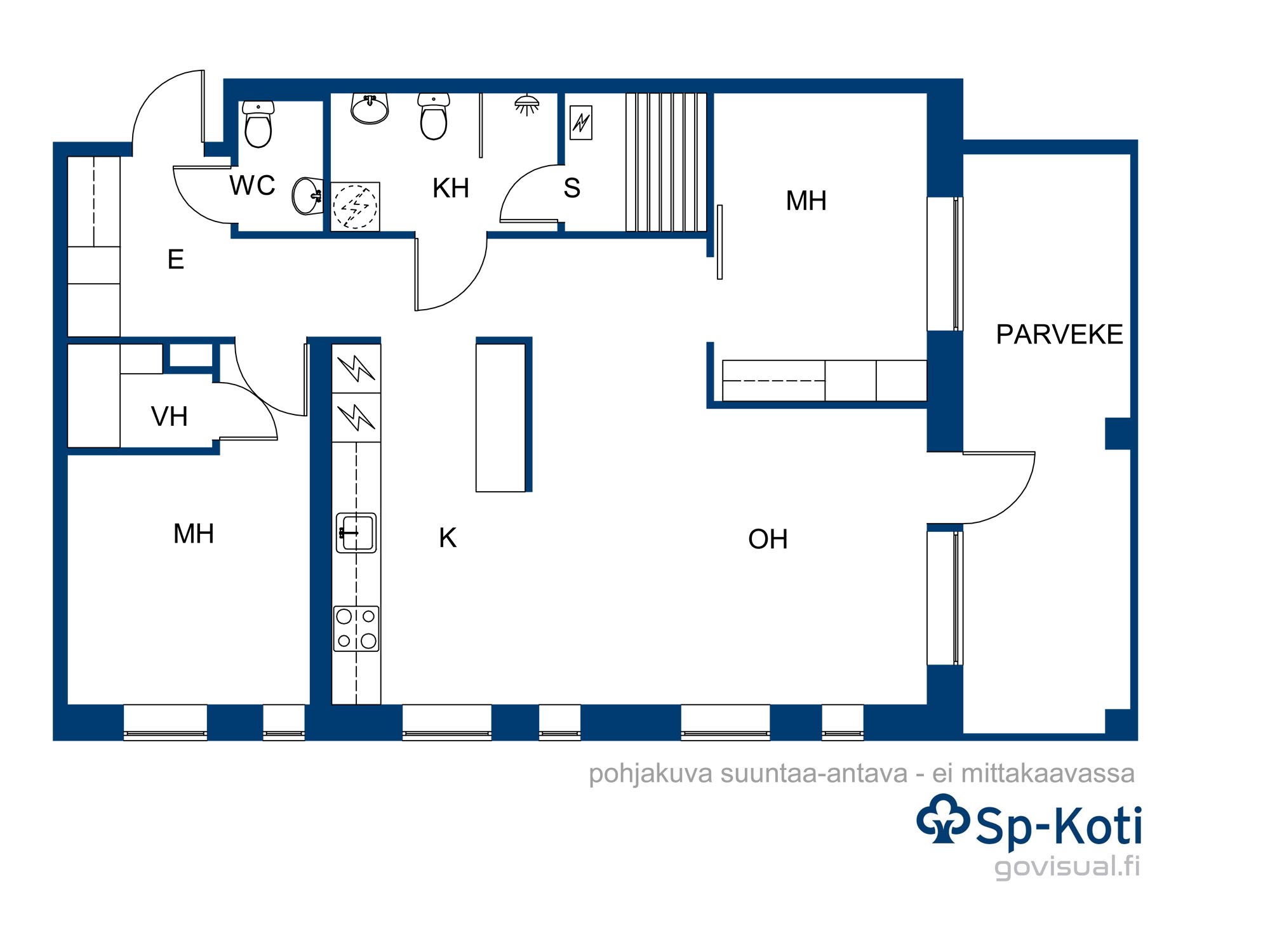 2 mh, oh, avok, vh, erillis-wc, kph/wc, sauna, lasitettu p.