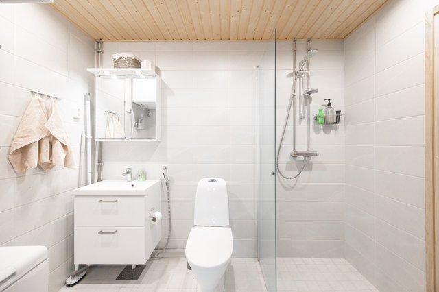 - Lattia: laatta. Seinät: laatta. Varusteet: suihku, kokolasinen suihkuseinä, bideesuihku, peilikaappi, allaskaappi, mukavuuslattialämmitys, kiinteät valaisimet, wc- istuin, PK- liitäntä. Wc sekä pesu- ja löylyhuoneiden sähköisen lattialämmityksen sähkönkulutus sisältyy hoitovastikkeeseen.