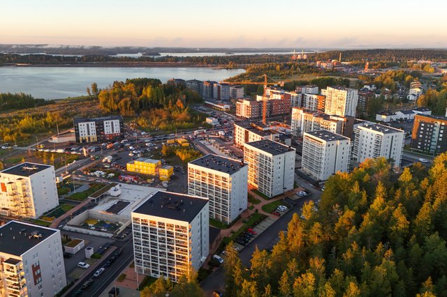 - Koneellinen ilmanvaihto ja asunnoissa lämmöntalteenotolla varustettu huoneistokohtainen ilmanvaihtokone joka on kytketty kiinteistön sähköön.