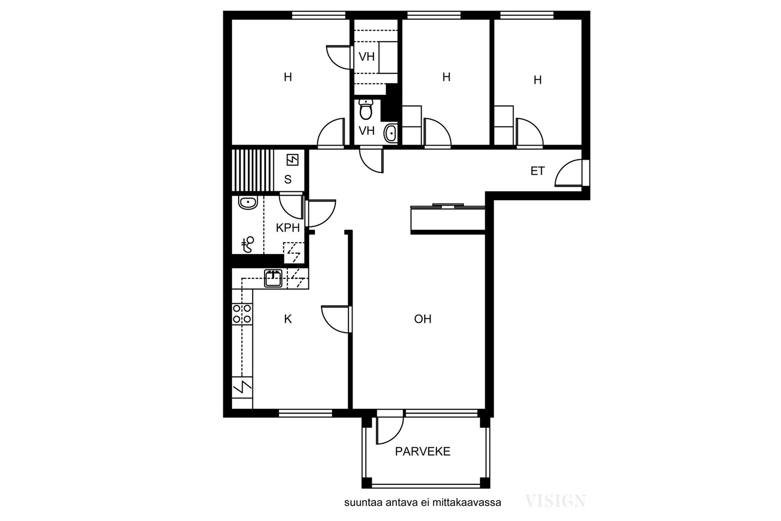 4 h, k, erill.wc, kph/s, vh, lasitettu parveke (Yj. 4h+k+s)