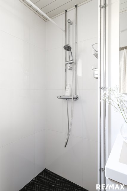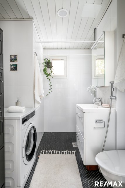 - WC-istuin, suihku, peilikaappi, allaskaappi, bidee-suihku, lattialämmitys, ja pesukoneliitäntä