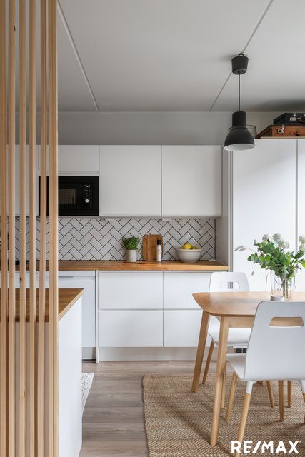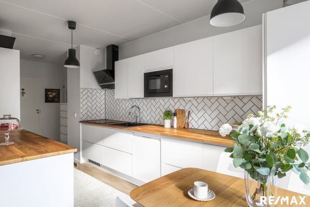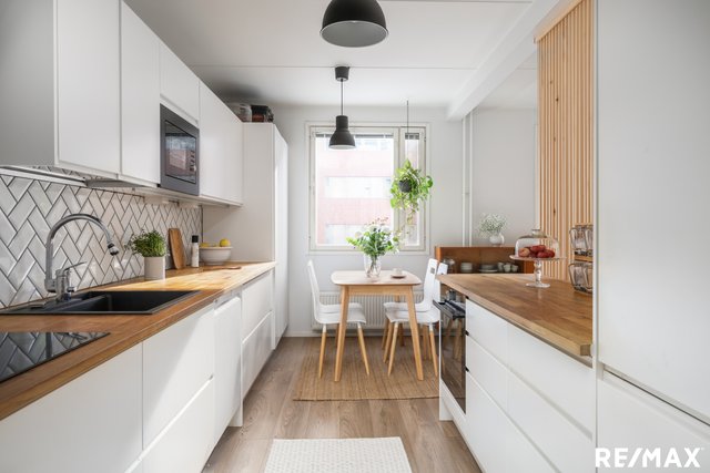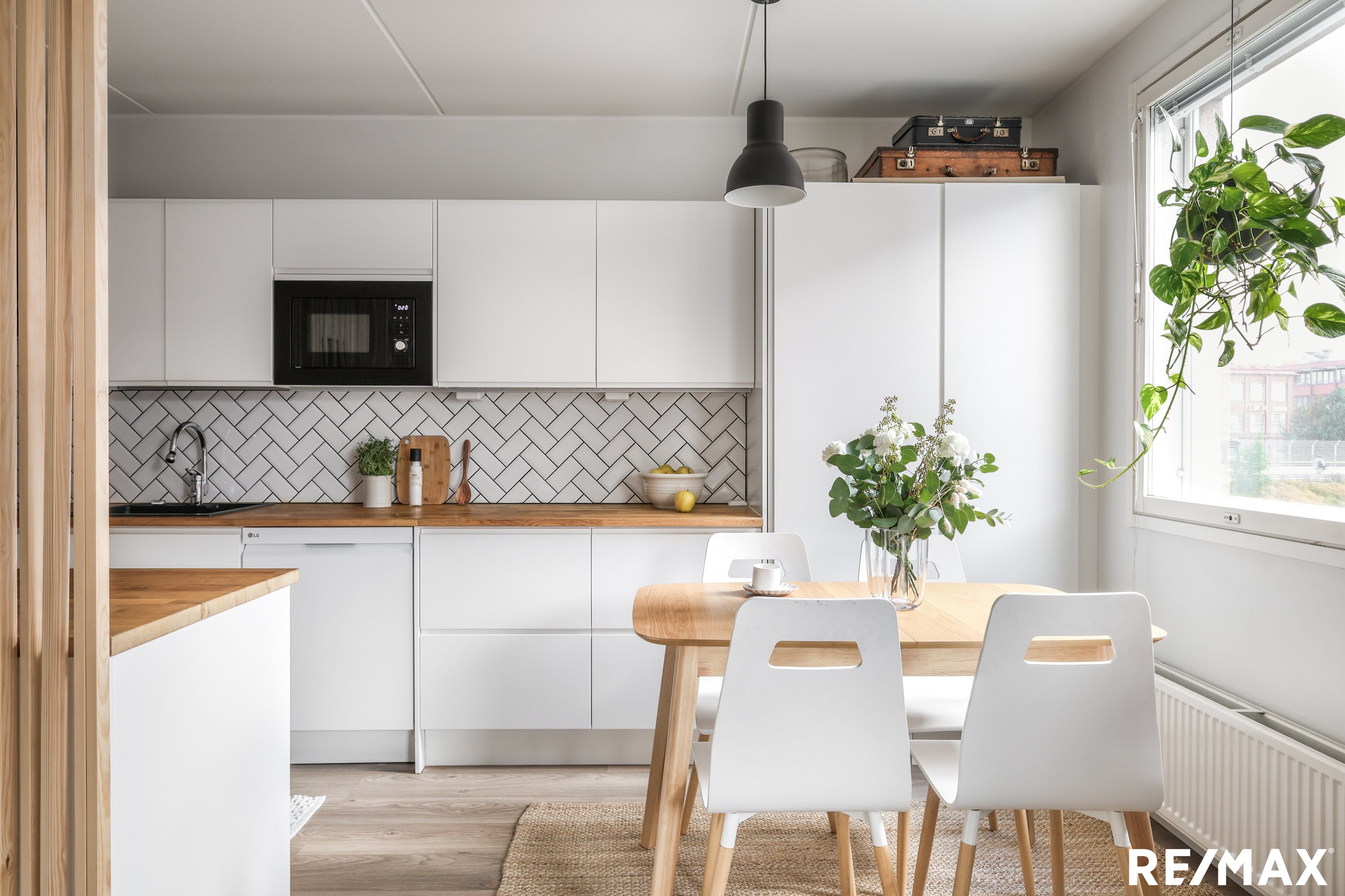 Asunnossa on moderni saarekkeellinen rimaseinällä erotettu keittiö, josta löytyy kaikki tarvittavat kodinkoneet. Kylpyhuoneessa on lattialämmitys ja tilavaraus pesukoneelle. Parvekkeelta voi nauttia ilta-auringon säteistä, sillä se on lasitettu ja suuntautuu länteen.