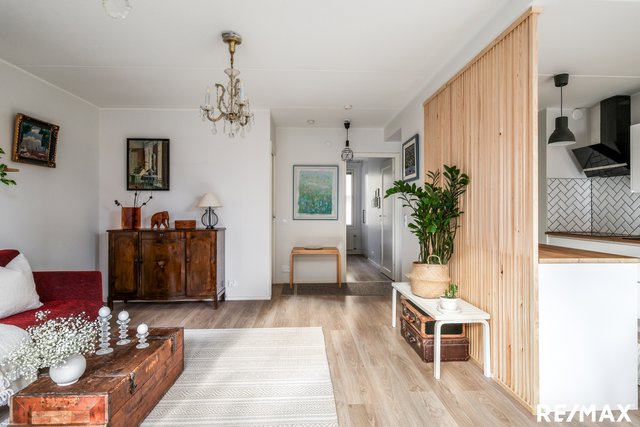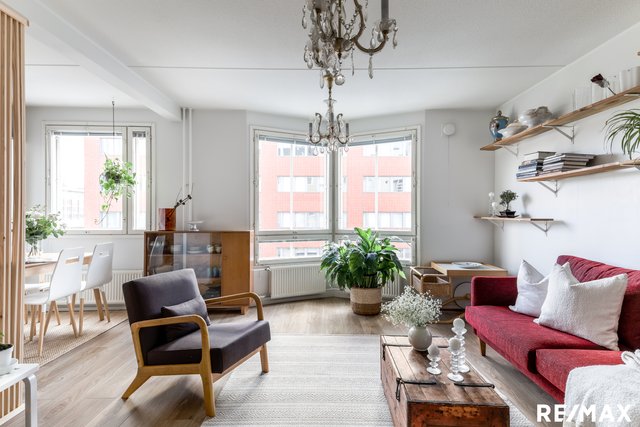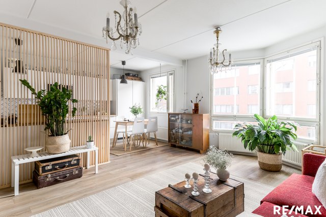 Valoisa ja viihtyisä kolmio Helsingin Sörnäisissä odottaa uusia asukkaita. Tämä 65 neliömetrin asunto sijaitsee neljännessä kerroksessa vuonna 1995 valmistuneessa hissitalossa.
